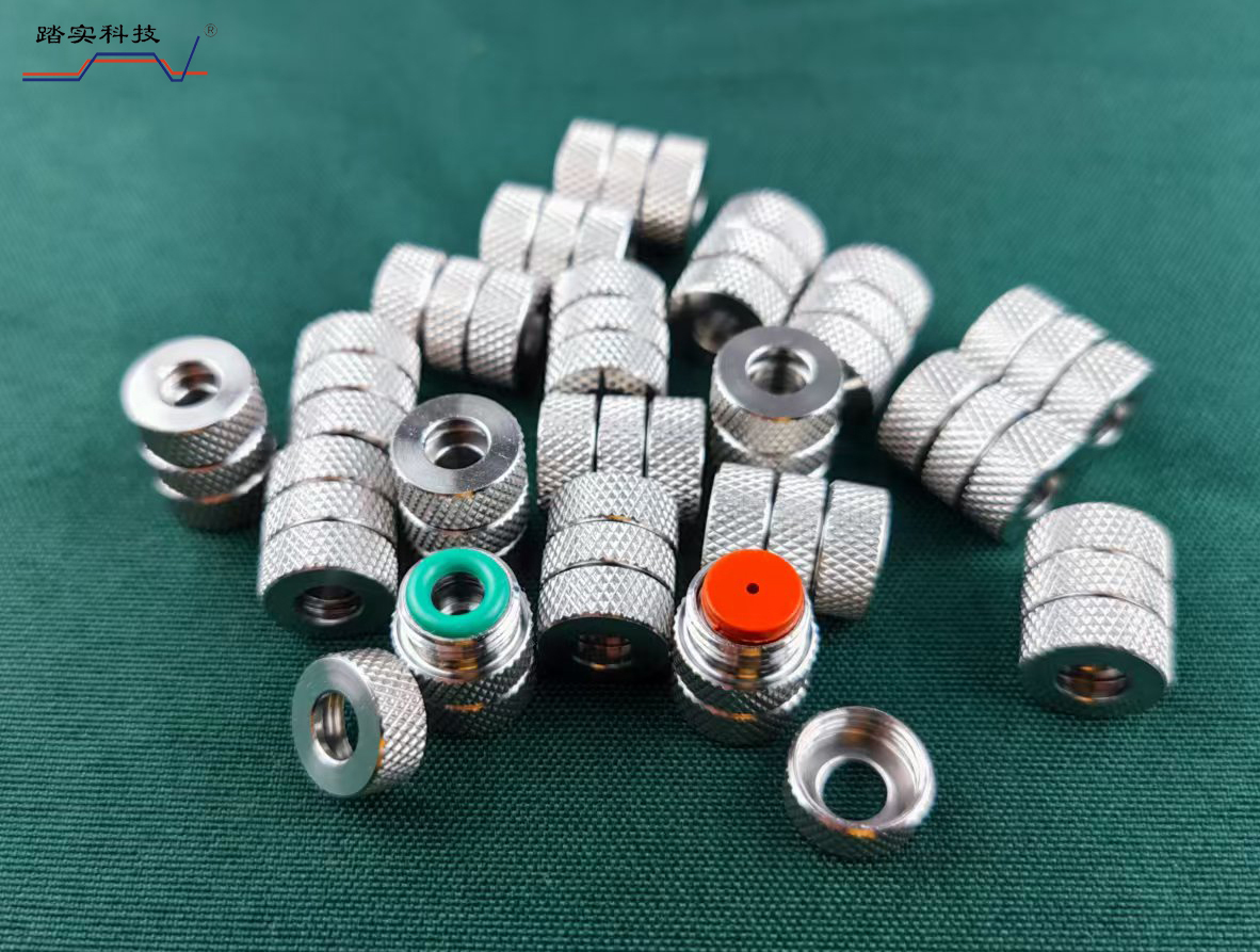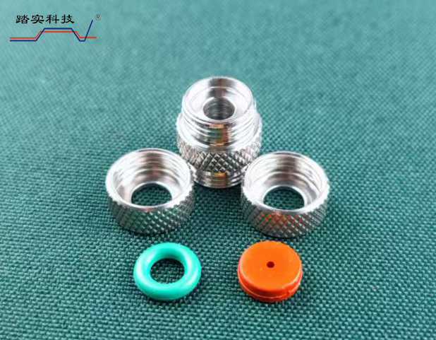 3、安裝方法按上圖中的順序,注意接頭兩通一面開的錐形槽,與O形圈、螺母、吸附管相連接,擰緊不能漏氣。一面開的平面槽,放進(jìn)樣隔墊,進(jìn)樣隔墊的預(yù)留孔朝外。手?jǐn)Q至沒有間隙時(shí),再擰約1/2圈即可,這時(shí)進(jìn)樣隔墊因擠壓向外凸起,凸點(diǎn)不應(yīng)超出螺母平面。另一端安裝方法相同。放入轉(zhuǎn)盤時(shí),箭頭方向始終保持朝下。